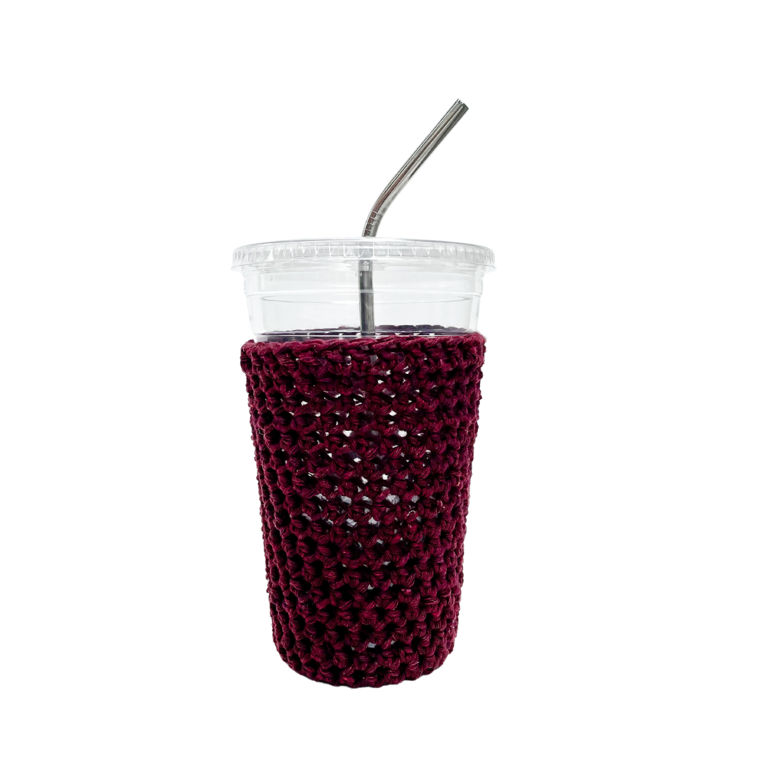 Recycled Iced Coffee Cup Cozy in Garnet Red